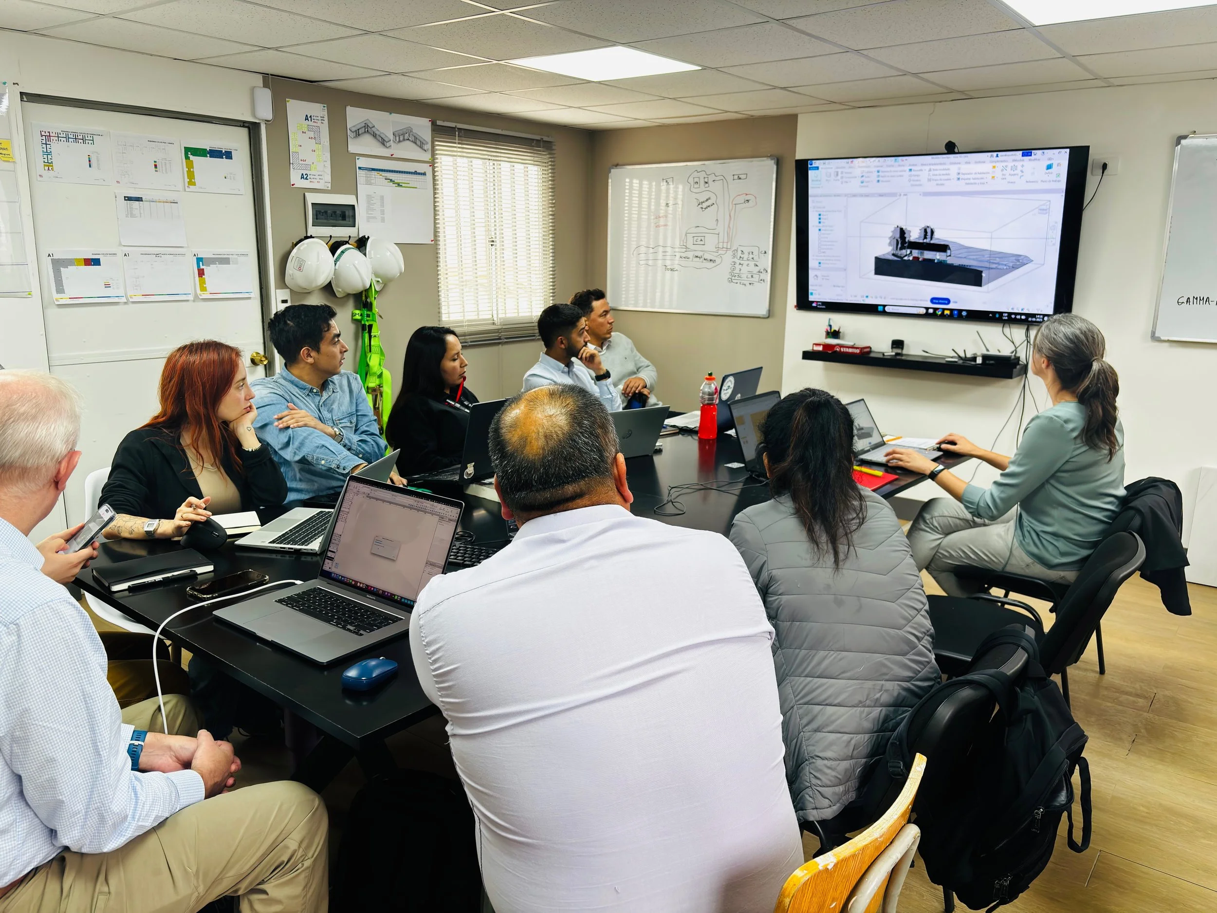 En paralelo, se ejecutó un piloto de aplicación BIM en el proyecto Viento Sur de Cerrillos, donde se levantó el mapa de procesos, se definió un plan de implementación específico y se acompañó su ejecución mediante visitas periódicas en terreno, con seguimiento técnico, validación de flujos y apoyo directo a los equipos de obra. Como parte de este proceso, se realizaron instancias de capacitación dirigidas a los distintos roles de la obra, con el objetivo de fortalecer competencias, alinear criterios de trabajo y facilitar la adopción efectiva de la metodología en la práctica diaria.